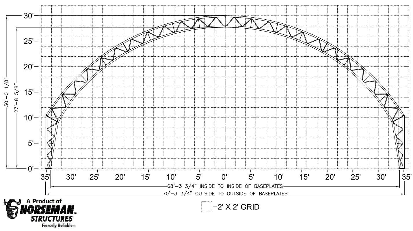 Discover the exceptional craftsmanship and engineering of the Norseman Structure Engineered Arch Model, an industry-leading fabric structure installed by Exceptional Innovation. With its meticulously designed engineered arch, this structure offers unmatched durability and reliability, making it the preferred choice for a wide range of applications in the cover all building industry.